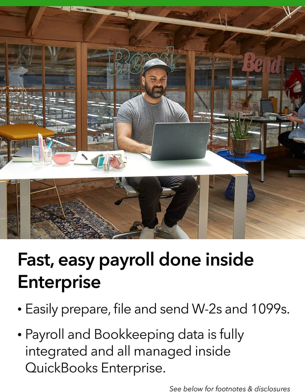 QuickBooks Enterprise: Manage your business and your bottom line with a flexible, all-in-one business solution that improves efficiency and productivity, and make quicker decisions with a clear line of sight across your business. Get the edition tailored to your industry, managing inventory with confidence, efficiently tracking business mileage, improving visibility into your cash flow and gaining deeper insights with data at your fingertips to make quicker decisions, and place the right information in the right hands with granular user permissions. Includes the option to add payroll, payments, employee time tracking, e-commerce and cloud access. Have peace of mind with automated data backups.